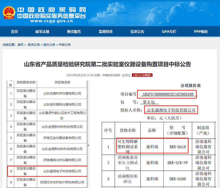 隨著可降解包裝檢測需求陡增,無法滿足檢測任務,近日,山東省產品質量檢驗研究院再次采購迪科瑞自主研發生產的可生物降解測試系統,本次采購不僅是對迪科瑞儀器的信任,同時也是對迪科瑞儀器技術實力最有力的證明。